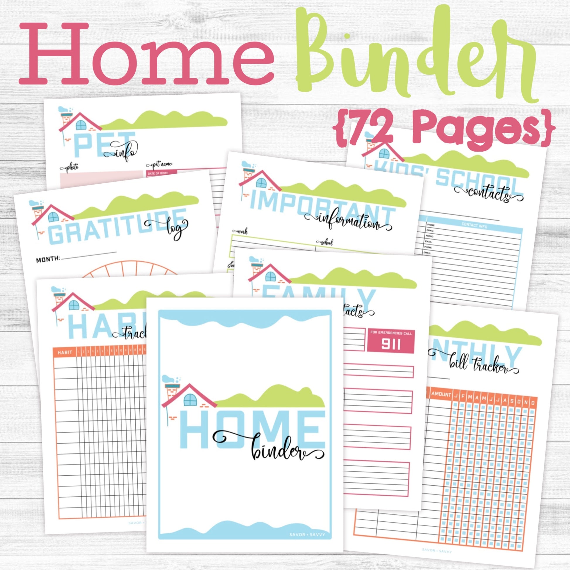 Weāve got you covered here! This Household Organization Binder is going to take you from chaos to calm in 71 pages. All of these pages are our tried and tested ones that we use in our own home. Binders kept our little family organized as the military moved us from state to state, school to school and everything in between. It was the constant that I knew had all the information in it and it became my baby. I needed something that could keep us constant and organized and binders were my go-to!Ā