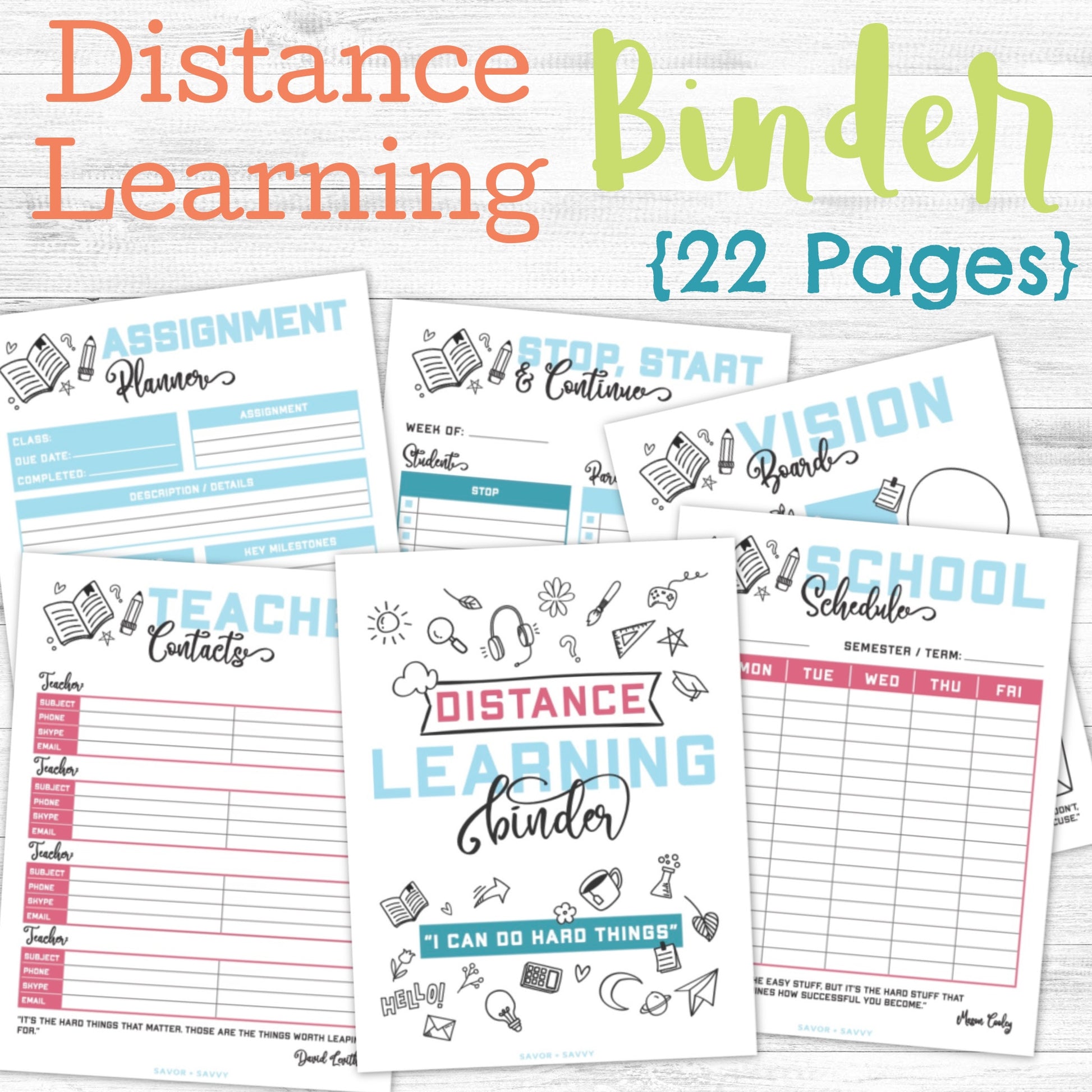 Distance Learning Binder differs from the School Binder as it is focusing on you, as the parent, plotting the course along with (or independently) with the brick and mortar teacher. It’s a delicate balance but we’ve got you covered!
